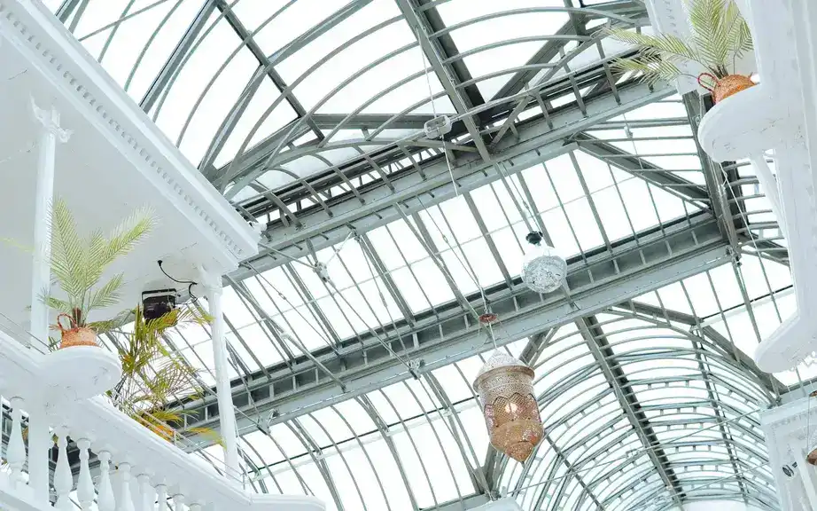 Unter dem beeindruckenden Glasdach vereinen wir die Pracht vergangener Zeiten mit modernem Komfort. Ob Sie eine romantische Hochzeit, eine stilvolle Familienfeier oder ein professionelles Firmenevent planen – bei uns finden Sie den perfekten Rahmen.
